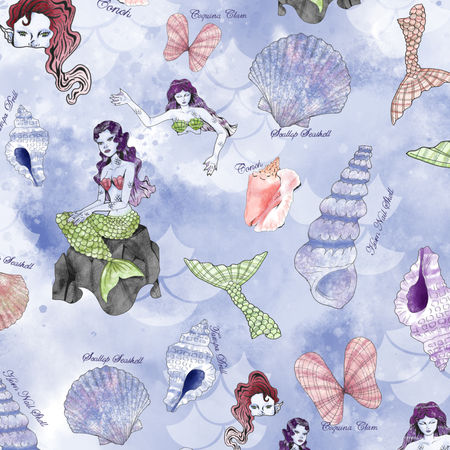The idea of a secret garden to me is a mysterious wonderland, filled with undiscovered creatures and an abundance of stunning flora & fauna. All of that, hidden behind a strange door. When opened, it leads you to this wonder-filled fantasyland. That were the ideas and inspirations I wanted to incorporate into my collection of patterns. I subdivided my collection into two sections. One section is about a forest, which is inhabited by elves and fairies. This forest is filled with flowering meadows, delicate butterflies, toadstools and mushrooms. The other section is about the ocean and the lakes in the garden. On the surface you can hear the serene singing of the tempting sirens, dragging anyone who gives in down into the depts of the sea, where ancient and mysterious sea creatures occupy the ocean floor. A variety of colorful seashells can be found on the shores, waiting for someone to pick them up.